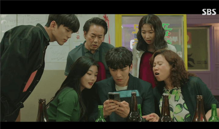 飲み会の席に、セッピョルが映画俳優カン・ジウク( キム・ミンギュ )を連れて現れると、デヒョンと家族は彼を大歓迎し、一緒に食べて飲んで話をして盛り上がった。