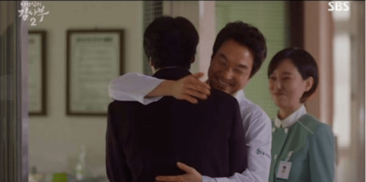 昨晩、心拍停止したヨ・ウニョン元院長の様子をチェックしていたキム・サブは、そこへ不意に現れたト・インボム( ヤン・セジョン )を見て立ち上がり、笑顔で抱擁した。