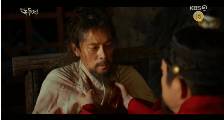 その時、外で警備をしていたノクドゥは、ユンジョの苦悩の叫びを聞いて中に入り、王から焼きごてを奪うと「私の進言をお忘れですか ? こんなことをなされば悪い噂がさらに広がります。 」と警告した。