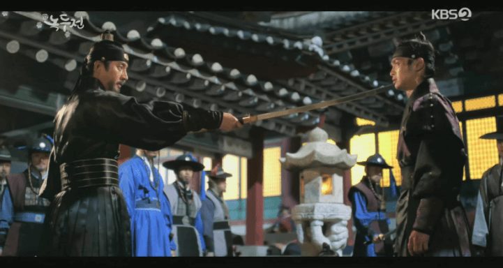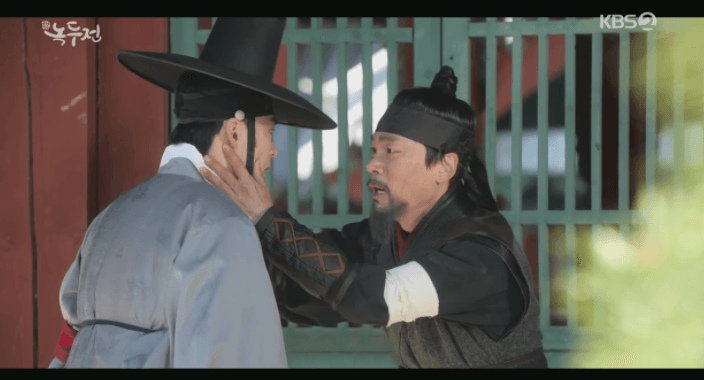 それでも「父である王様に捨てられた奴婢のような奴が王位を継ぐと?そんな資格はない ! 」と引き下がらないユルムに、ノクドゥは「妓楼の遊び人だったお前にはあると?」と言い返した。