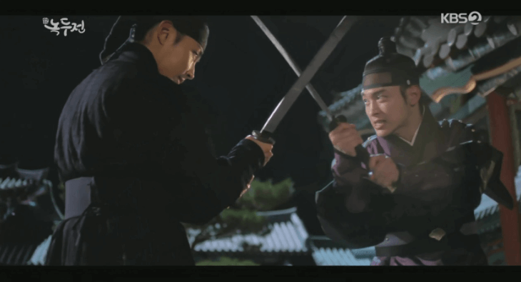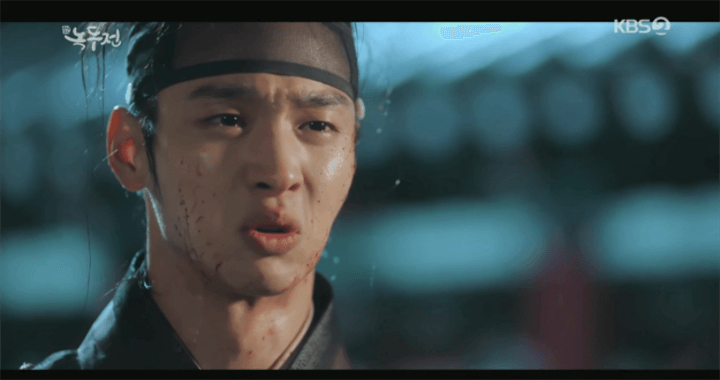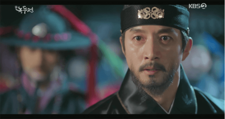 一方、王妃とノクドゥを追ってきたユルムは、負傷した兵曹を助けて逃げているノクドゥを発見し、背後から弓を構えた。