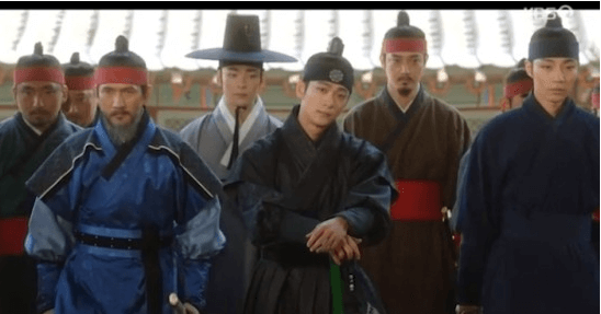 さらに「いないのか?ならばしかたがない。 入ってこい ! 」というノクドゥの合図で、兵曹判書※が軍を率いて現れると、ユルムは 「兵曹判書、この者と手を組むと?急に寝返るとは妙ですな。 私と兵曹を争わせ、この者が王位を狙ってるやもしれぬぞ ! 」と叫んだ。