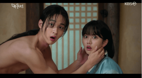 ドンジュたちの帰りを待っていたヨン・グン( コ・ゴナン )と姑生たちは、ユルムに腰に腕を抱えて眠っているノクドゥを見て驚愕し、2人の関係を疑った。