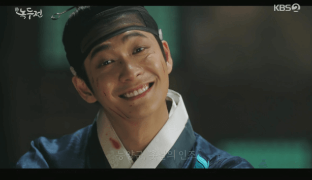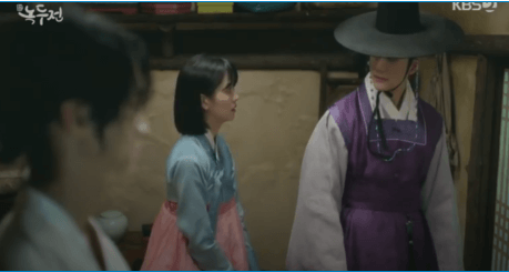 ドンジュの協力で女装して籠から出てきたノクドゥは「わざと捕まったんですよ。 」と説明してその場からムウォル団のキム・スク( チョ・スヒョン )を逃がすと、籠を覗こうとしているチョンチルの召使いを平手打ちして叱責した。