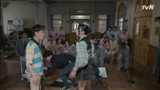 これに、ムニョンが「チューもしたし仲直りのキスもしたわ。 キスだけじゃ足りなかったので...。 」と続けると、ガンテは咳をして話を遮り、脚を蹴って止めるよう合図した。